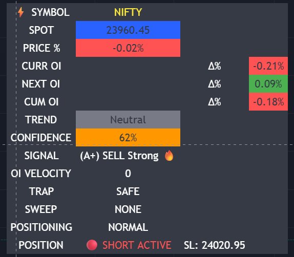 - Wait for the Signal: Look for an (A+) BUY Strong or (A+) SELL Strong signal. This ensures volume, ADX, and Open Interest are all backing your trade.