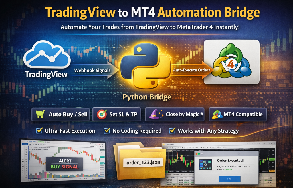 Modern traders demand speed, accuracy, and automation. Manual order execution from TradingView to MT4/MT5 causes delays, slippage, and missed opportunities. Our TradingView to MT4 Automation Bridge solves this problem by enabling fully automated order execution directly from TradingView, without manual intervention.