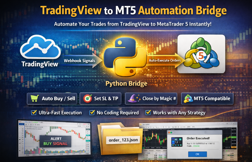 Modern traders demand speed, accuracy, and automation. Manual order execution from TradingView to MT4/MT5 causes delays, slippage, and missed opportunities. Our TradingView to MT5 Automation Bridge solves this problem by enabling fully automated order execution directly from TradingView, without manual intervention.