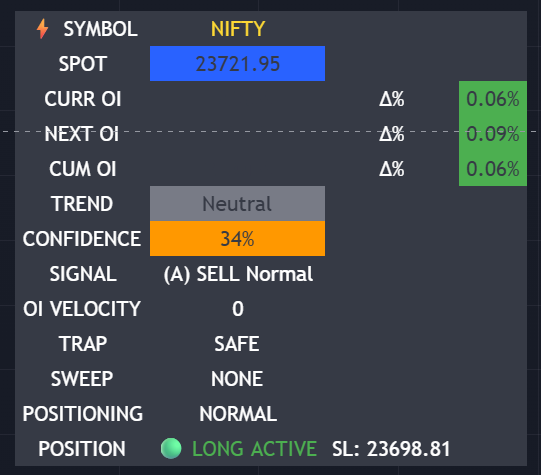 - Strong Bullish/Bearish: Indicates a high-conviction move where Price and OI are aligned.